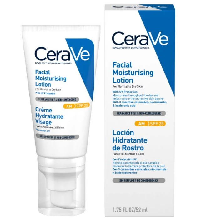 A lightweight, moisturising face lotion with broad spectrum SPF25, for all-day hydration for normal to dry skin. Specifically formulated to moisturise sensitive skin that is normal to dry and exposed to UV rays. Broad Spectrum SPF 25 Sunscreen provides protection against UVA and UVB rays while the formula hydrates, while helping maintain and protect the skin barrier of the face. Spreads easily and dries with a clear finish.
