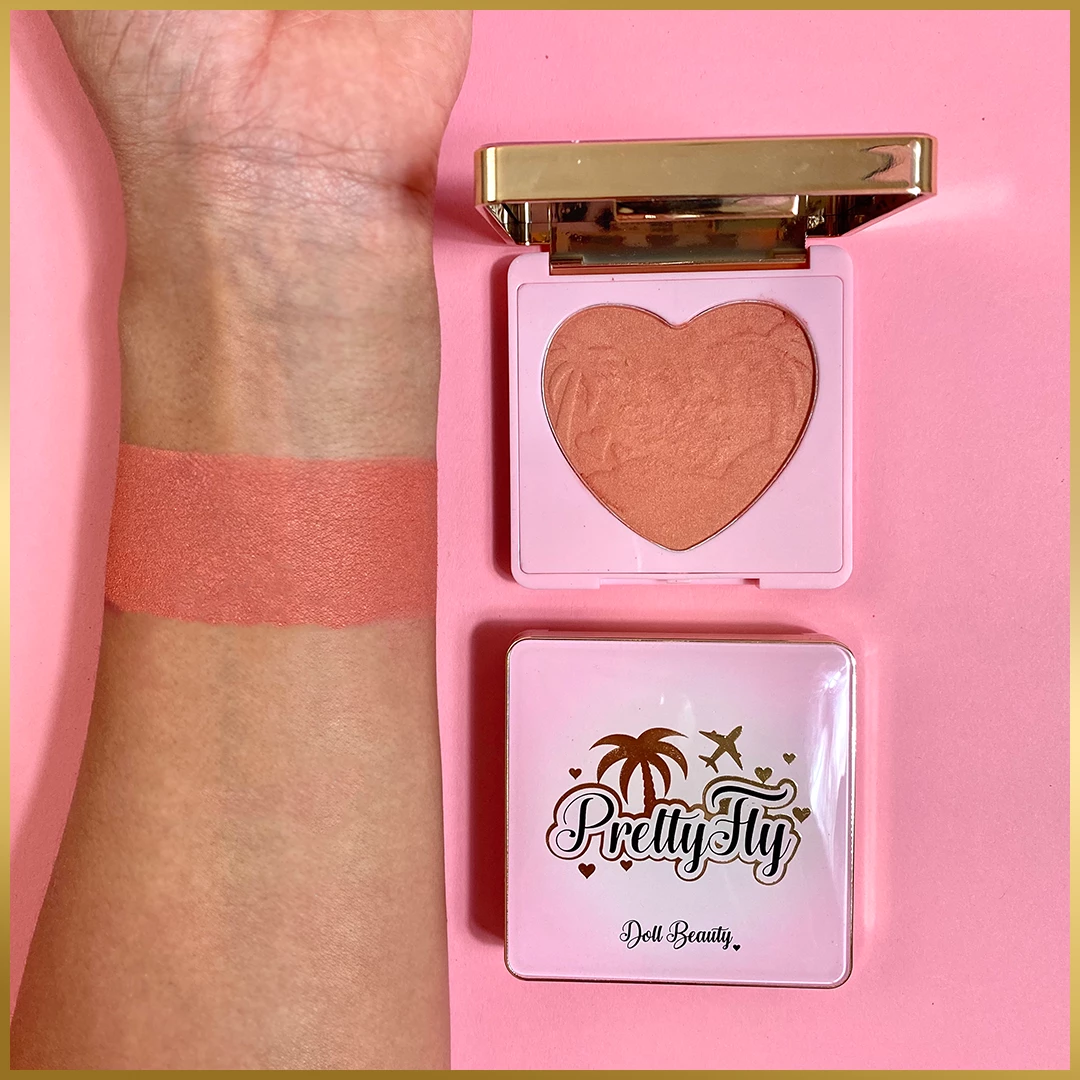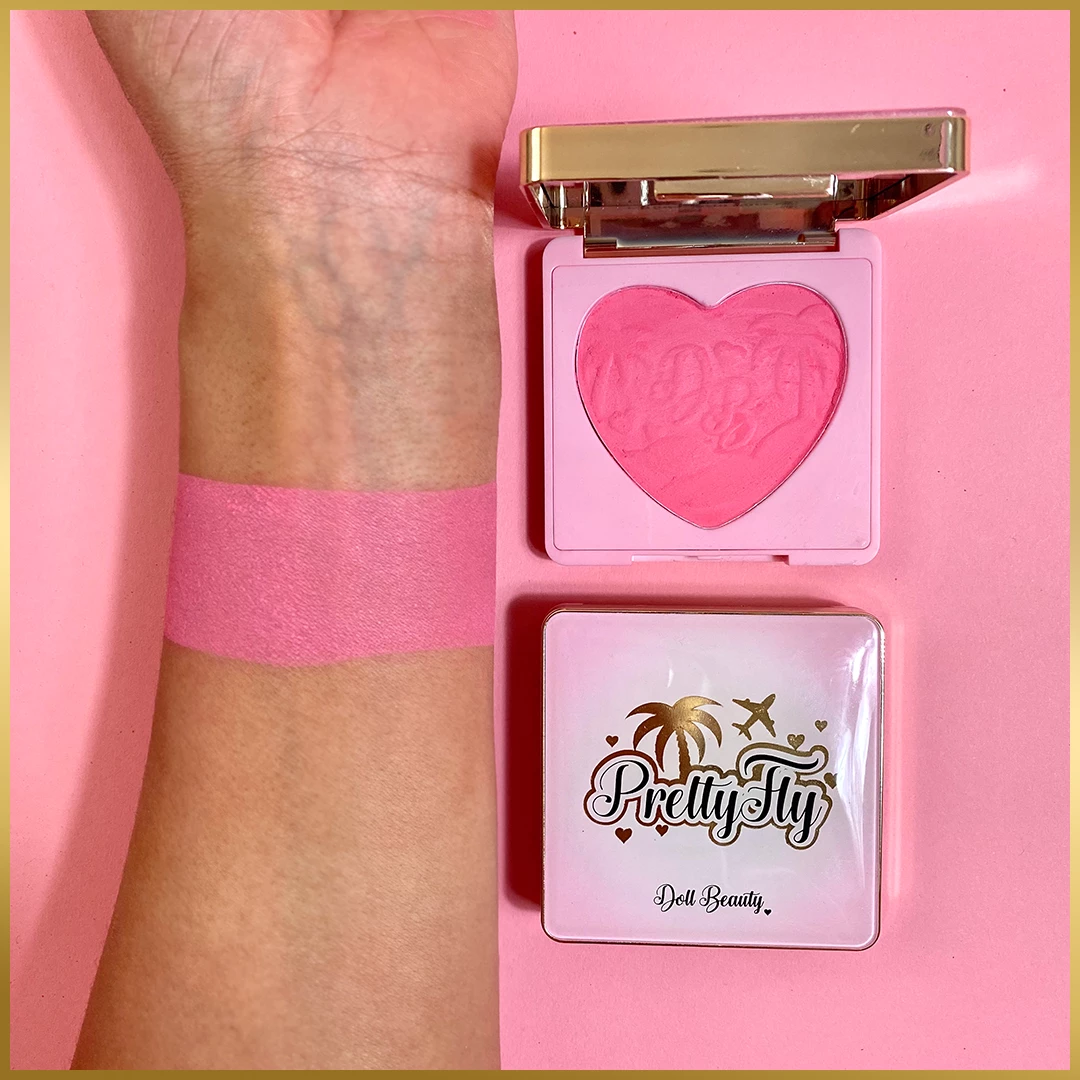 Add a natural flush to your complexion with the Doll Beauty Pretty Fly Blusher. The pigmented formula allows for a buildable flush of the colour to add depth and dimension to the skin. The finely milled powder buffs seamlessly onto cheeks for a natural glow that lasts.