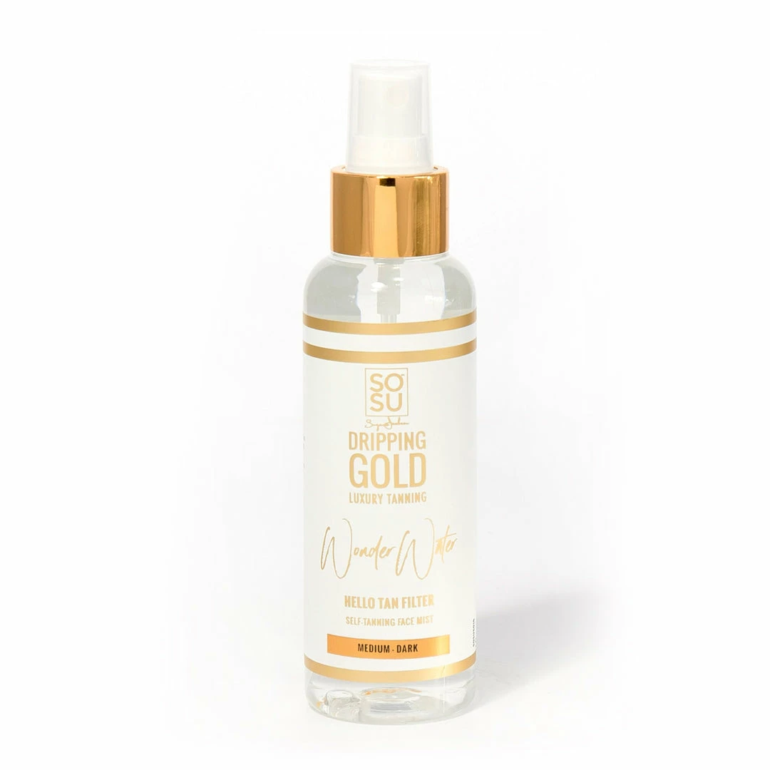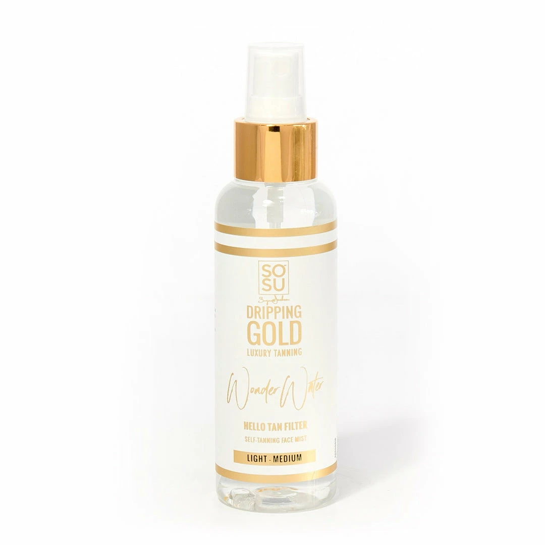 Introducing Wonder Water… your must have facial tan filter for those make-up free days and early on-the-go mornings. A Vitamin E infused and super-hydrating face tan mist that develops in 4-8 hours giving your face a beautiful golden glow and that coveted filter effect. Natural looking, doesn’t clog pores, evens out skin tone.